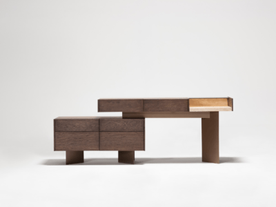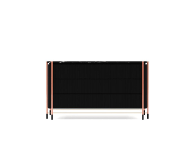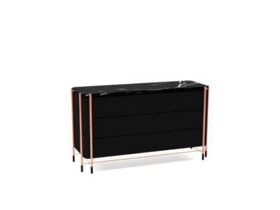 Dresser, where wood and marble meet at a common point, was designed for modern living spaces. While it achieves eye-catching elegance with metal touches, it also creates visual integrity with its stance.