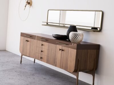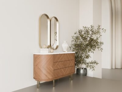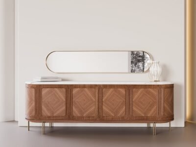 Amber sideboard mirror gives a completely different direction to the decoration thanks to its large volume and modern design; a must-discover.