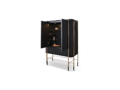 With its cylinder-like shape and minimal design, Tulip cabinet adds a golden touch to the decoration.