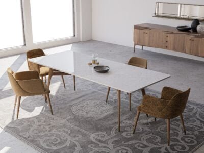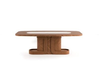 Unlike conventional dining tables, Amber Dining Table does not restrict the usage area and makes meal time more enjoyable, thanks to its wide marble top fixed in the middle.