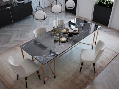 With its rose gold color accompanying the noble energy of black, Dali Dining Table creates a strong harmony between modern and oriental lines. The legs preferred in the design offer both a creative approach and adapt to contemporary lifestyles.