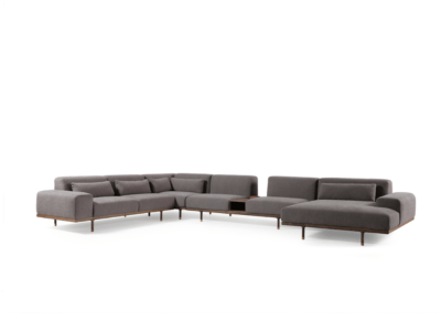 Era is a system of modular sofas featuring rigorous shapes. A design marked by geometrical lines, based on mix & match modular elements that came together in linear, angular compositions or with the addition of hanging trapezoidal or rectangular elements in unusual and highly appealing configurations.