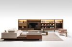 - ERA WALL UNIT is a system with load-bearing lateral pieces, which develops as a series of modular furnishings with a wide range of options: 4 widths, 1 depths and 1 heights, conceived as a bookcase, TV system or multipurpose cabinet.