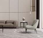 Fency bergere with its back soft cushion and metal details, is the best candidate to be an integral part of sofas. Its non-staining fabric and functional design are the most special and striking.