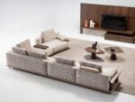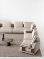 – Odeon is a system of modular sofas shapes. A unique look with wooden arm details, wooden bar
