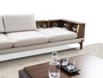 • US walnut veneer on MDF is used for the product’s bookcase arm and side table.